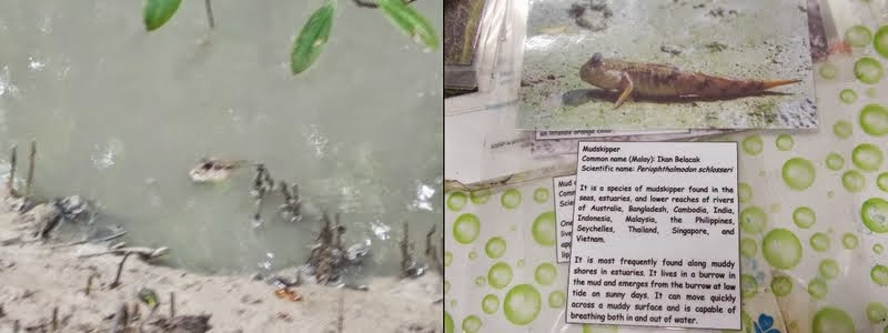 A mudskipper egy kb 25-30 cm-es hüllő. Elsőre kis krokodilnak néz ki, ahogy a mocsárban lapul. Mikor meglátott, jól elbújt. Csak a szeme látszott ki a sárból.