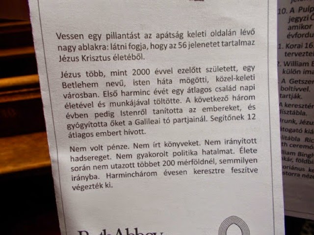 A fürdő után megnéztük a katedrálist. Ez ingyen volt és még magyar nyelvű leírást is adtak. Tudom, hogy nagyon kritikus vagyok, de nehezen fogtam vissza magam, hogy ne említsem meg nekik segítő szándékkal, hogy a fordítás egy kissé hmmm ... vicces. "Jézus Betlehemben, egy isten háta mögötti városban született".