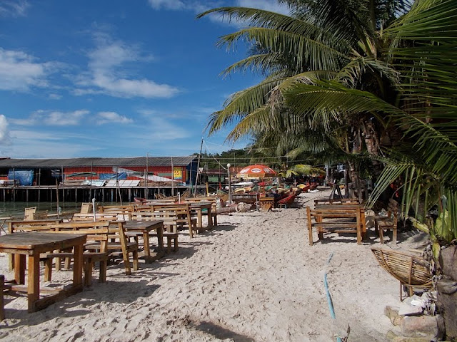 Lepakoltunk, elmentünk feltérképezni a terepet. A sziget nem kicsi, de az a partszakasz, ahol mi vagyunk, viszonylag rövid. Alig pár 100 méter. Végig fehér homok és panziók meg éttermek.
