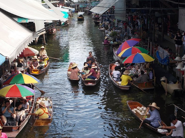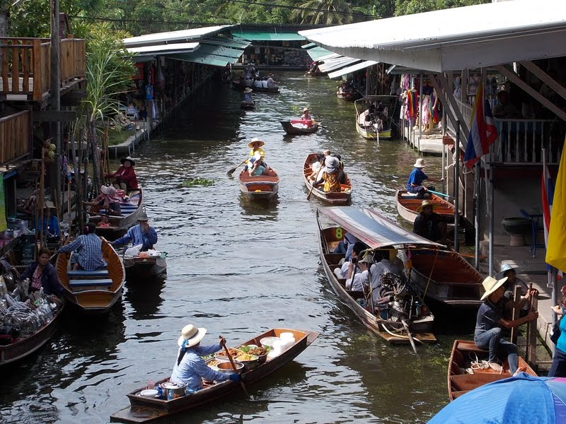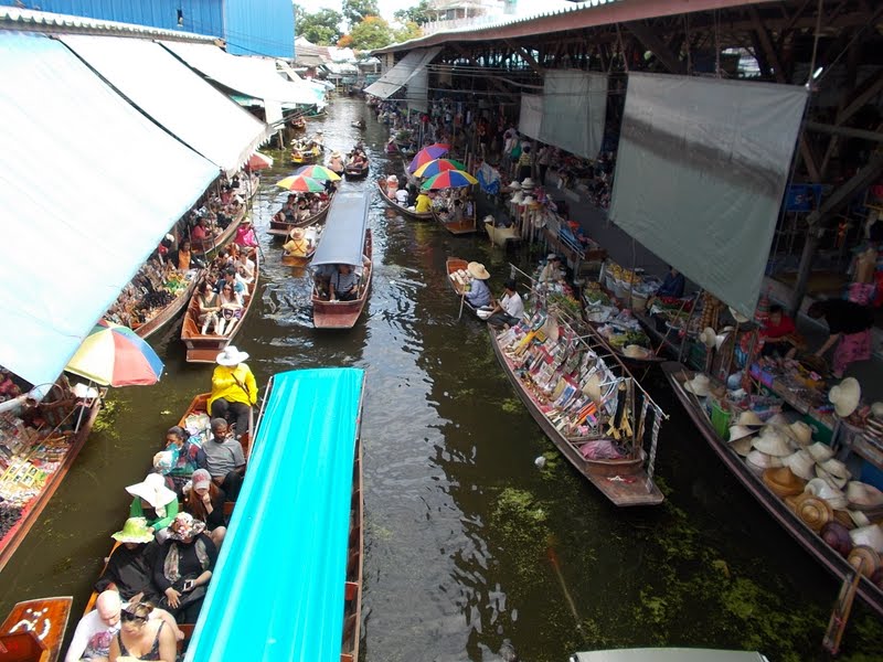 A piacon lehetett volna jó drágáért csónakot bérelni és úszkálni az árusok között, de ahogy elnéztük, árusok szinte alig csónakáztak a folyón, szinte teljesen turistákkal volt tele. Ha több időnk lett volna, el kellett volna menni a nem turistás piacra, de oda nem szerveznek utakat és egy teljes napunk meg nem volt (mivel a vonatom délután 3-kor indult).