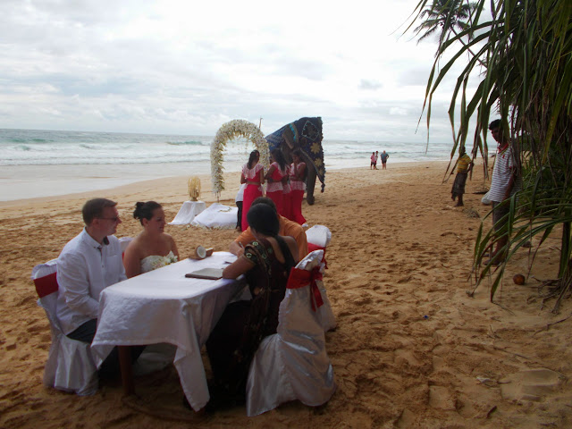 A hagyományos szingaléz esküvő a poruwa szertartás szerint zajlik. A koszorúslányok énekelgetnek valamit (közben vakaróznak, meg nem képesek rendesen állni, pedig előre kértük őket, hogy próbáljanak tekintettel lenni arra, hogy ők itt a díszlet részei a fotózáshoz, de még így sem sikerült fegyelmezniük magukat), a táncosok dobnak pár szaltót, a szertartást vezető ceremóniamester meg szingalézül kántál.